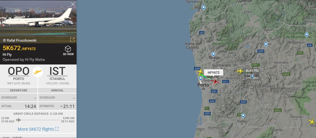 Porto - A340, HiFly. Все выездные игры команда пользуется этим вс 9H-FOX
