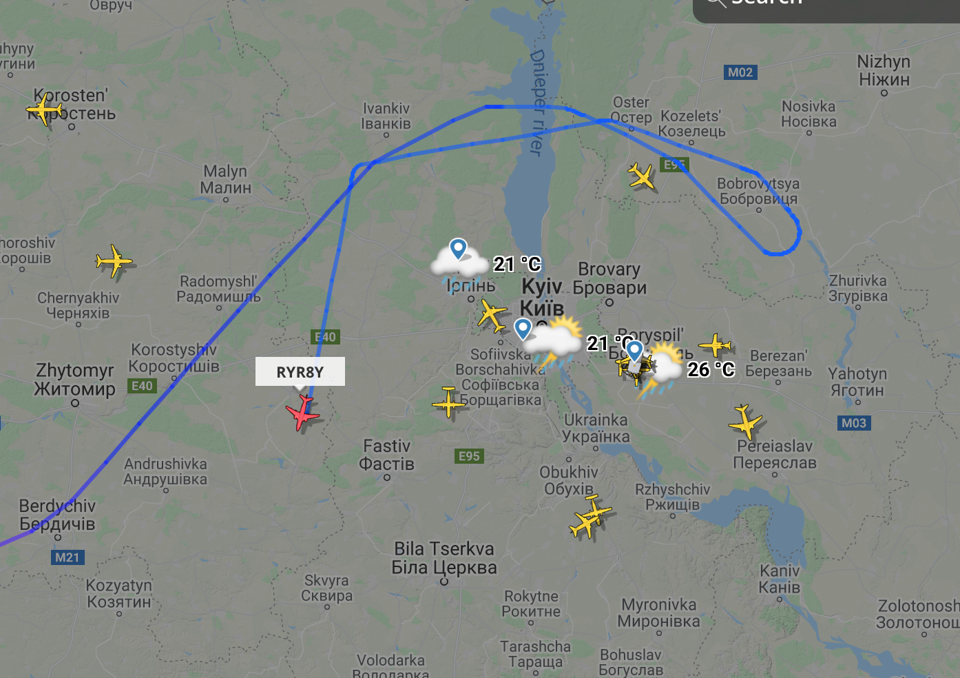 Сменили курс посадки и Райян в облет грозы с запада пошел на юг. На полпути опять поменялся курс и теперь возвращается для захода с севера :stars: