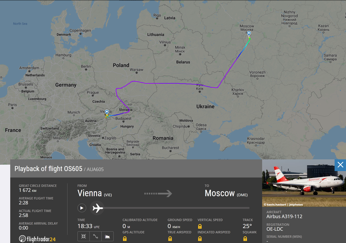 Дивні маневри Австрійських авіаліній рейсу Відень-Москва 15.07.2021
