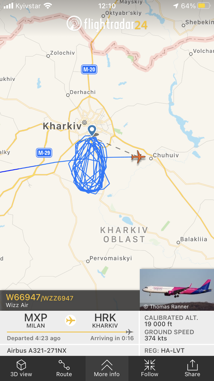 Лучше бы сразу на Жуляны ушел. 2,5 часа над Харьковом висел...
