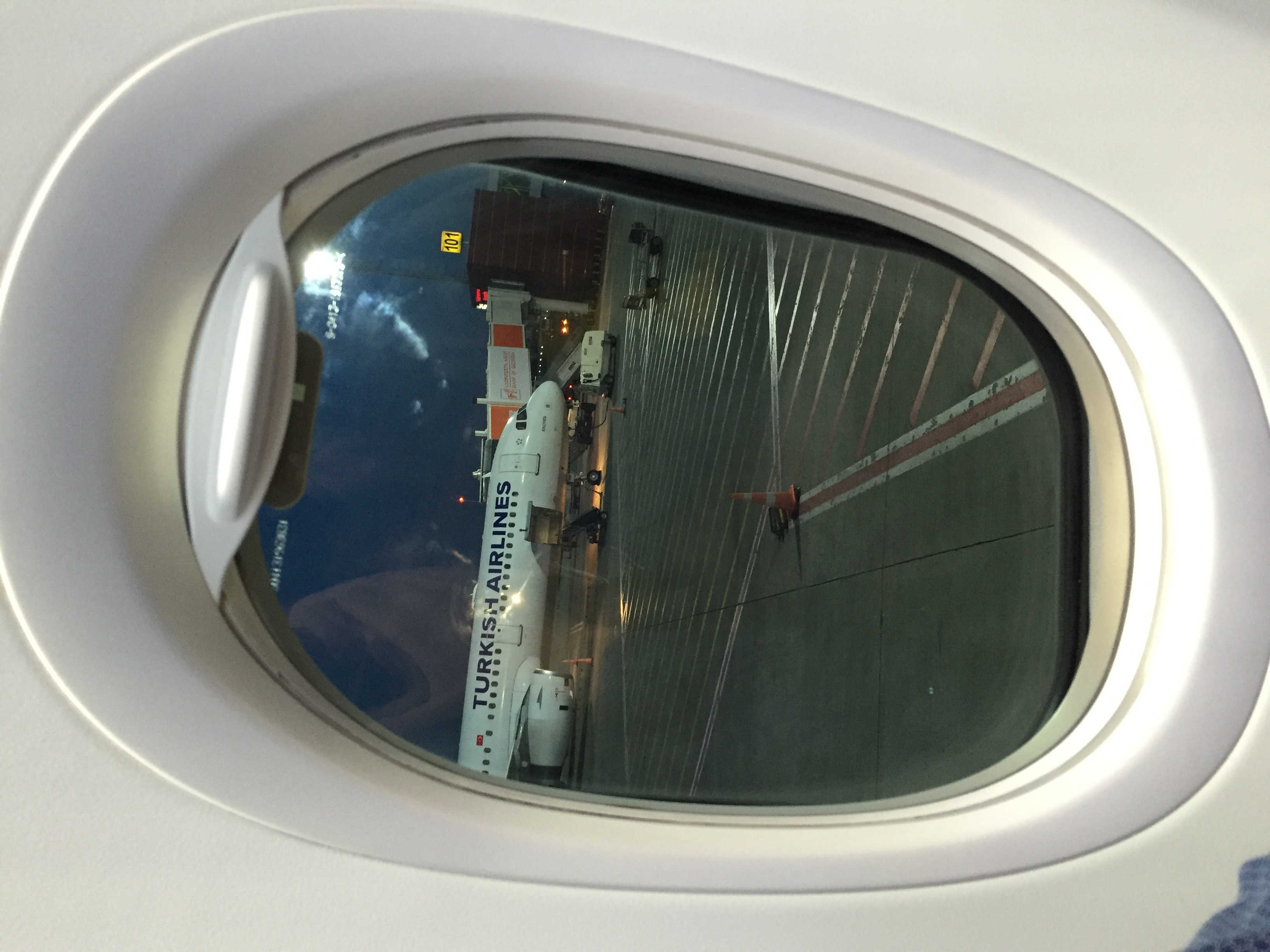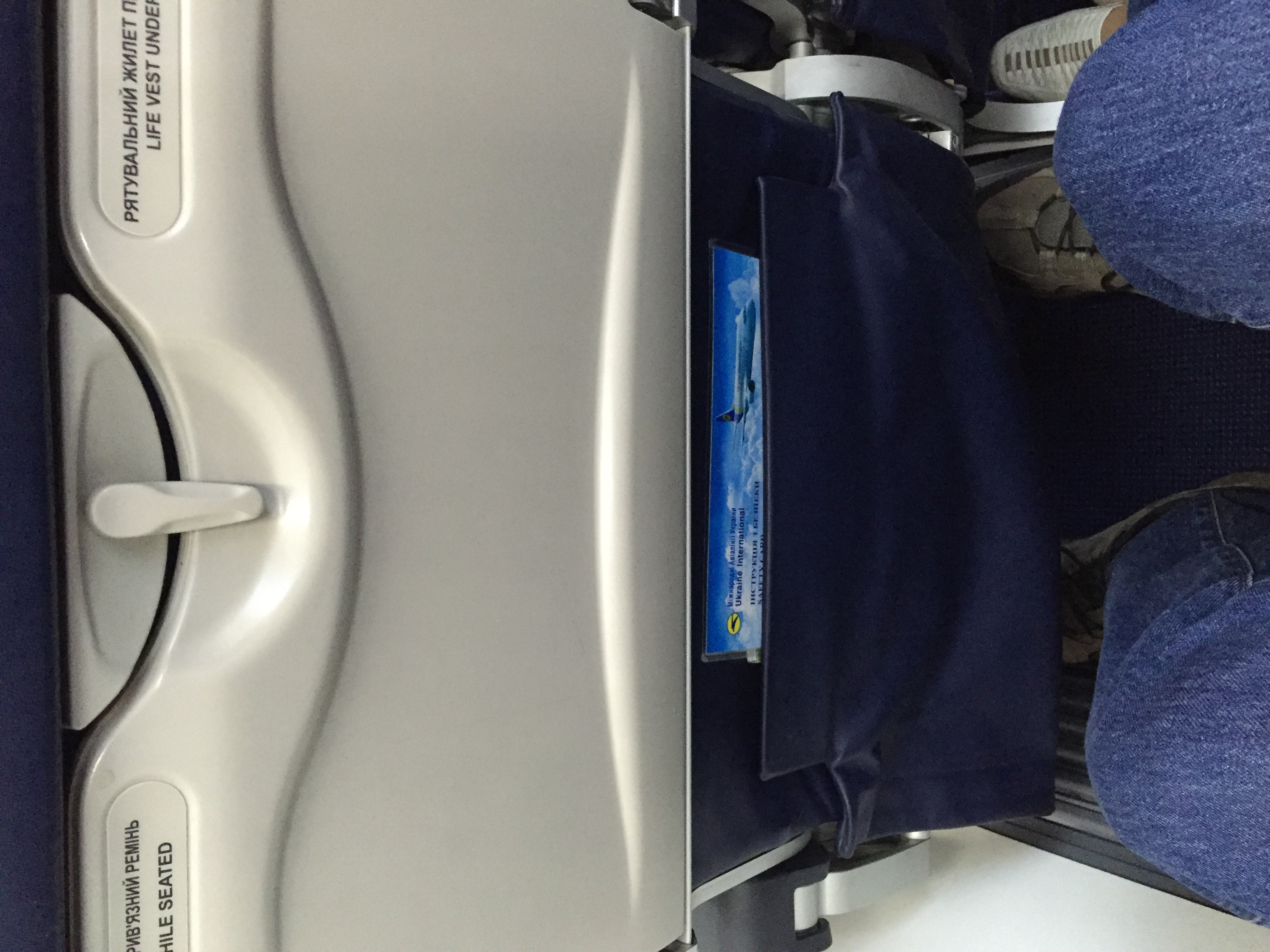 Недавно опять летал МАУ: всё вовремя, специально сфотал иллюминатор, а также расстояние от ног до кресла впереди (я выходил со своего места, не поднимая пассажиров рядом) нв и sky interior с новыми багажными полками. UA-PSI.