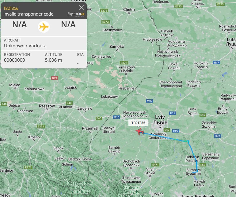 Дивітся які хитрі, якщо зум зробити, видно що напочатку вильоту поворот був коло озер. Даю гарантію що вони не ризикували Львівський аеропорт (один з останніх не вражених війною) і вилетіли замість з Ягелона. Літак був малий і летів з маленькою швидкістю, якраз такий може злетіти з Аеродрому Ягелон.