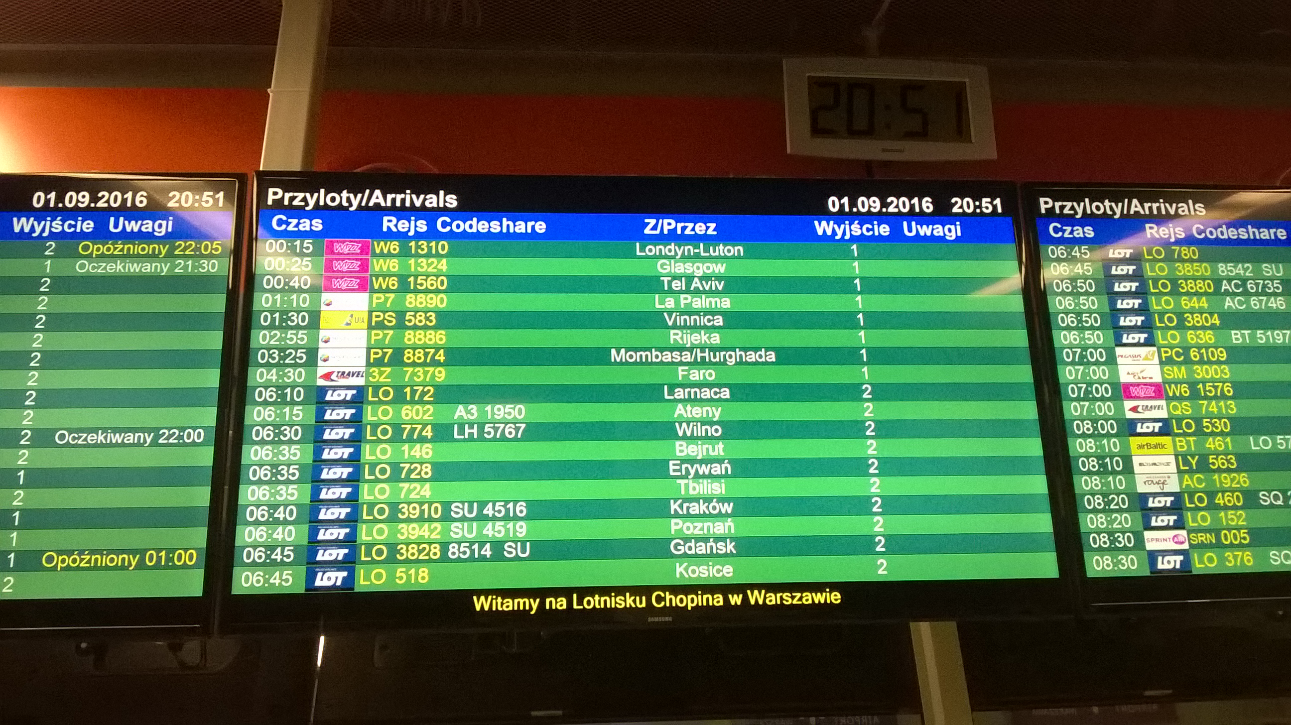 Фото табло прилёта в WAW,