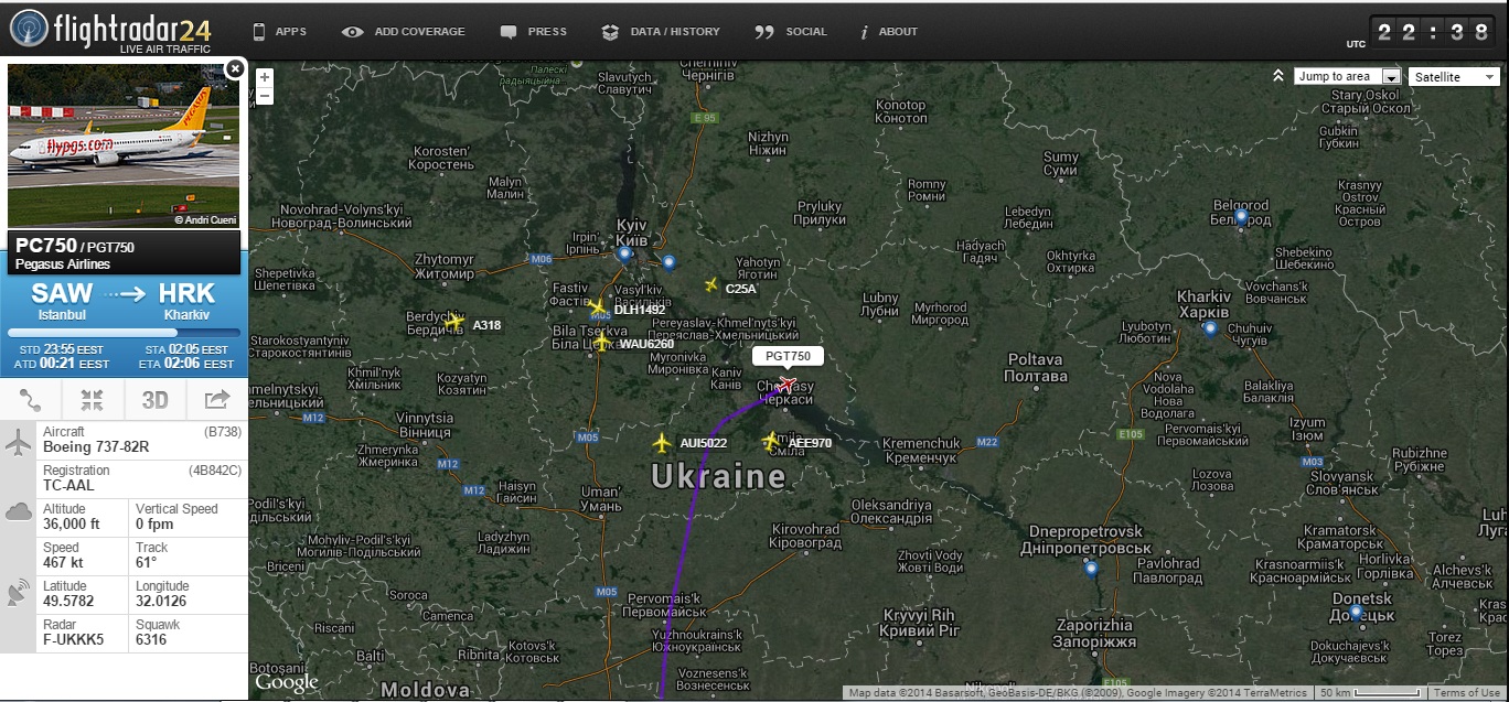 Austrian Airlines flight #OS751 from Vienna to Kharkiv turned around over Ukraine and is returning. Reason unknown