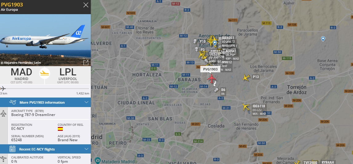 Atletico - B789. Air Europa. Команда долгое время с данным перевозчиком.