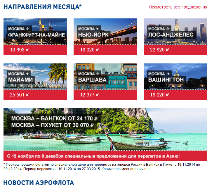 у Аэрофлота акция, например Москва-Нью Йорк или Вашингтон 386 баксов, в Лос-Анжелес 485