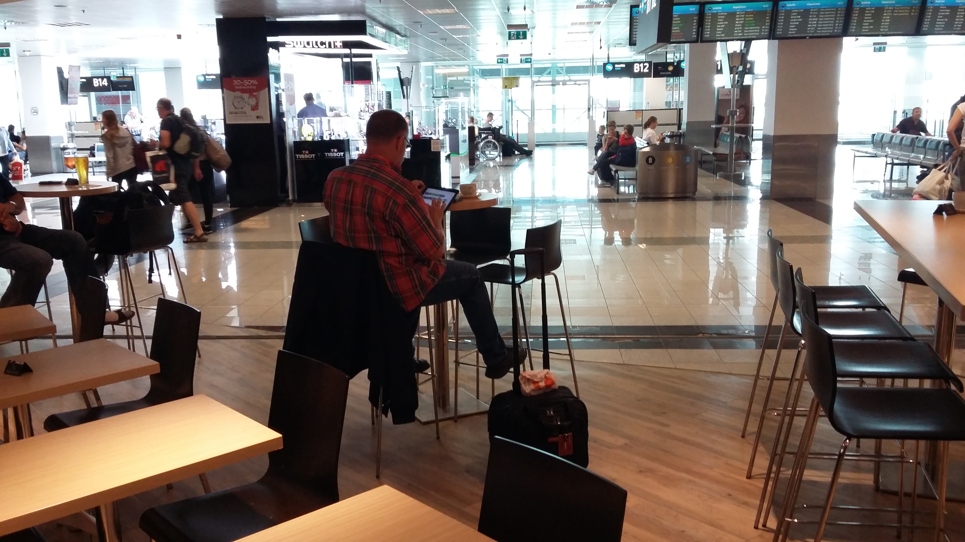 Приехали в аэропорт имени Ференца Листа в терминал 2В за 2 часа до вылета. Сдали багаж и получили, помимо посадочных, желтые рукописные приглашения в бизнес лаунж. Спрашиваю у сотрудницы, что все это выписала, а как называется этот лаунж и где находится. Она, как на первом свидании, отводит глаза и говорит, а вы туда идите и там спросите. Ну, туда, значит туда! Прошли мы авиационную безопасность, потратили остатки форинтов в дьюти фри и пошли искать где же этот самый лаунж расположен. Добрые люди указали, что нам по эскалатору на 3 этаж. Поднялись. Слева и справа от входной двери логотипы, практически всех АК мира , но МАУ там не нашли. Спрашиваю на ресепшене, нам сюда или нет? Милые дамы покрутили наши волчьи билеты и говорят:" А вы, ребята, судя по желто-синей открытке, что нам дали, наверное, за пределы Евросоюза летите, тогда вам спуститься на 2 этаж, пройти насквозь весь терминал, затем, пройти паспортный контроль и в районе гейта 9В ищете себе счастье."