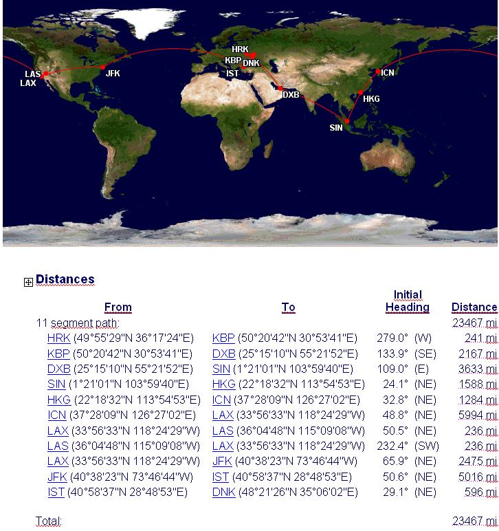 Интересный маршрут. Со своей стороны скажу, что уже пол года планирую несколько кругосветок, но по немного другим параметрам. Во-первых, должны быть включены все континенты, во-вторых, есть вариант лететь самым экономным вариантом, а есть - лететь только альянсами (только One World, только Star Alliance, только Sky Team). Альянсами выходит где-то 4500-5000 у.е. Самый дешевый по всем континентам получился 2000у.е. Удачи в путешествиях!!!