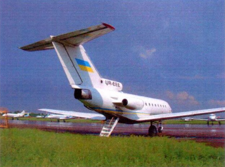 Літак для цивільної авіації ЯК-40 заводський номер 9120817, реєстраційний номер UR-АКР, 1971 р.в. Характеристика літака: довжина – 20,4 м., розмах крил – 25,0 м., висота – 6,5 м., площа крила – 70,0 м. , виготовлювач повітряного сдуна – Росія Саратов САЗ, пасажирський салон – кількість крісел (економ) 27-36, крок економ класу – 75 см., довжина салону – 7,70 м., ширина салону – 2,15 м., часова витрата палива – 1200 кг. - 1шт.