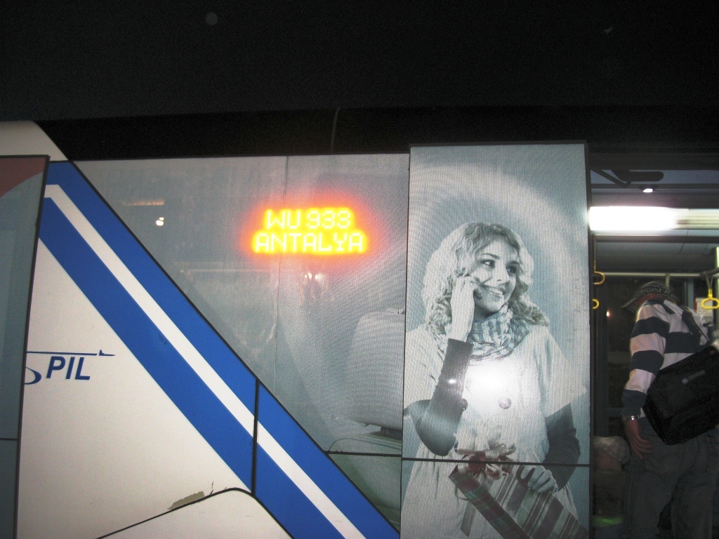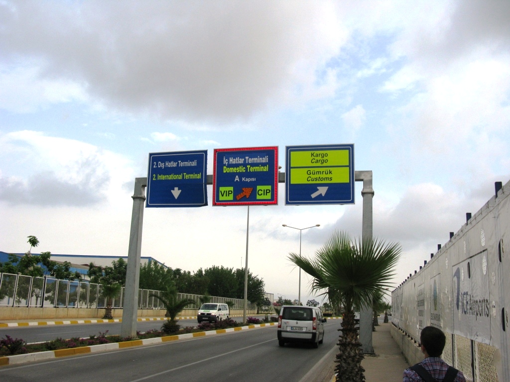 Прилёт Визз осуществляет в Терминал 2. Оттуда добраться, а точнее выбраться можно только на такси - в любой соседний город, ценник есть возле стоянки такси (можно в долларах, евро=разница есть в зависимости от курса, здесь в Украине; что-то типа 30 баксов = 20 евро (в центр Анталии), то есть экономней заплатить в евро - ну и в зависимости от дальности). Если вам хочется добраться ещё дешевле есть служба Havas - типа нашего Атаса - в 2009 стоило около 9 лир, где его искать не знаю, так как воспользовался службой такси. Ещё вариант пройтись пешком до терминала №1 (но это судя по растоянию не близко - около 2-3 км.), там есть городское автобусное сообщение с центром Антальи.